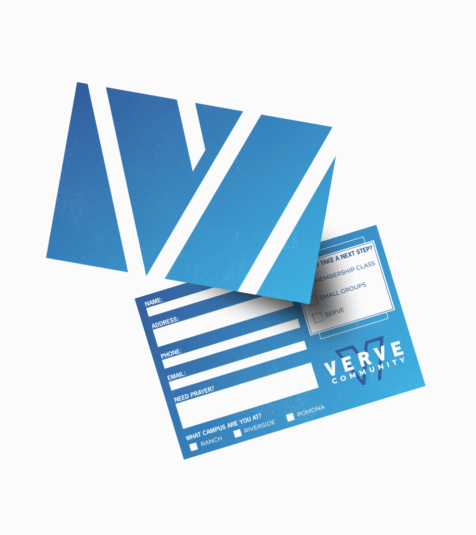 In collaboration with Legible — a brand strategy and identity firm — I had the opportunity to work with Verve. Verve is a church located in Southern California who was seeking to launch two new locations. Alongside these launches came the need for a new look. I was tasked with producing a logo animation, a connection card, and social assets.